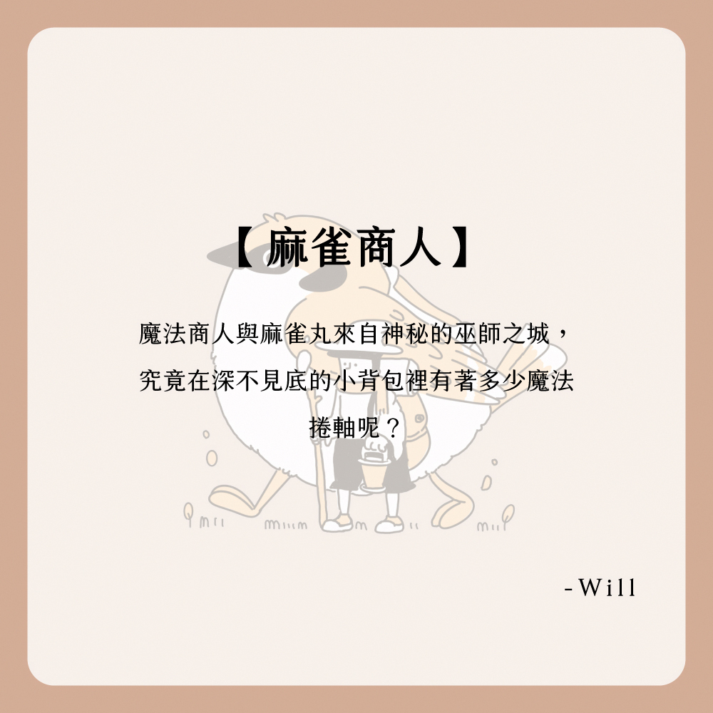 魔法商人與麻雀丸來自神秘的巫師之城,究竟在深不見底的小背包裡有著多少魔法捲軸呢?