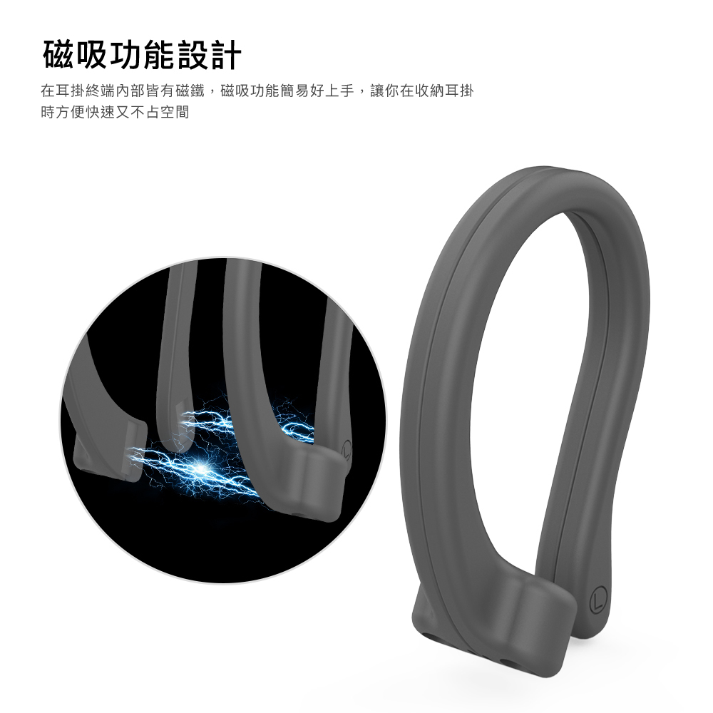 ・包裝內含:磁吸耳勾式運動防掉耳掛X1(對)+收納掛環X1(個)