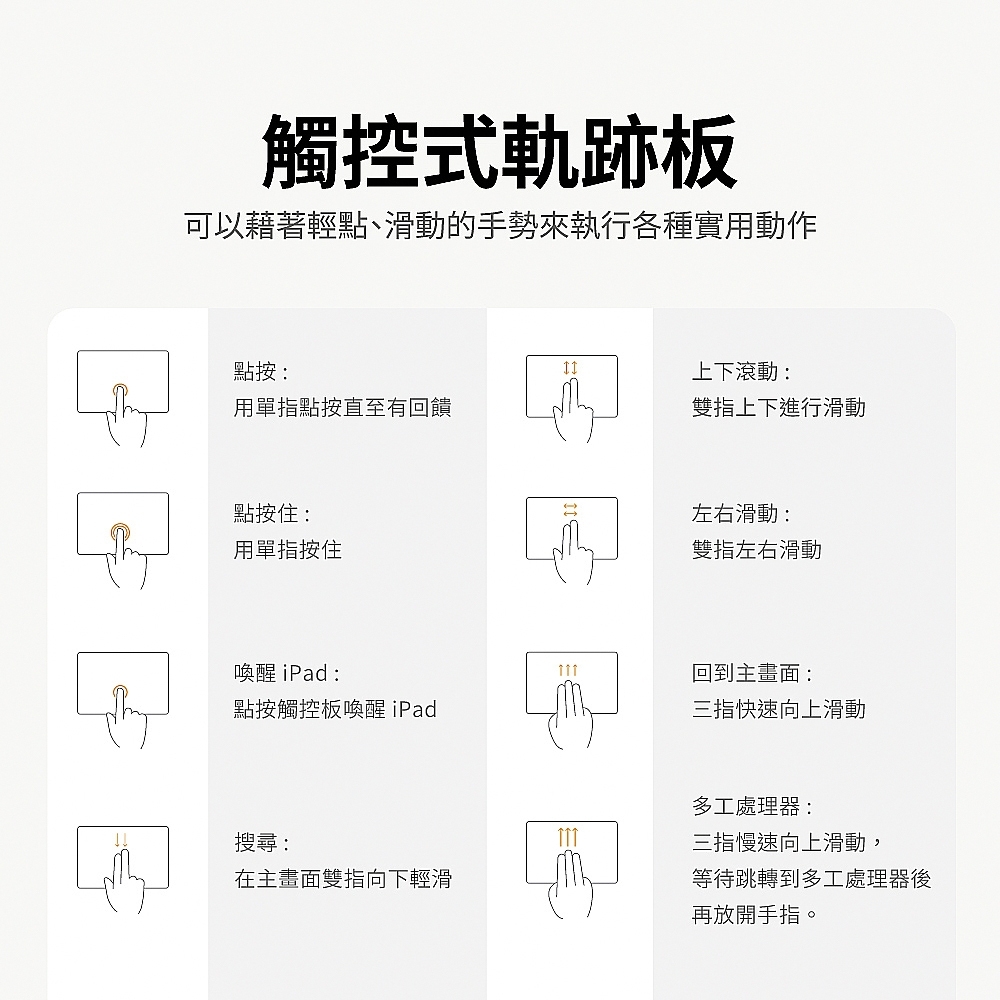 輕點、滑動、兩指捏合、三指滑動…操作就像MacBook般自然順手,支援多種手勢