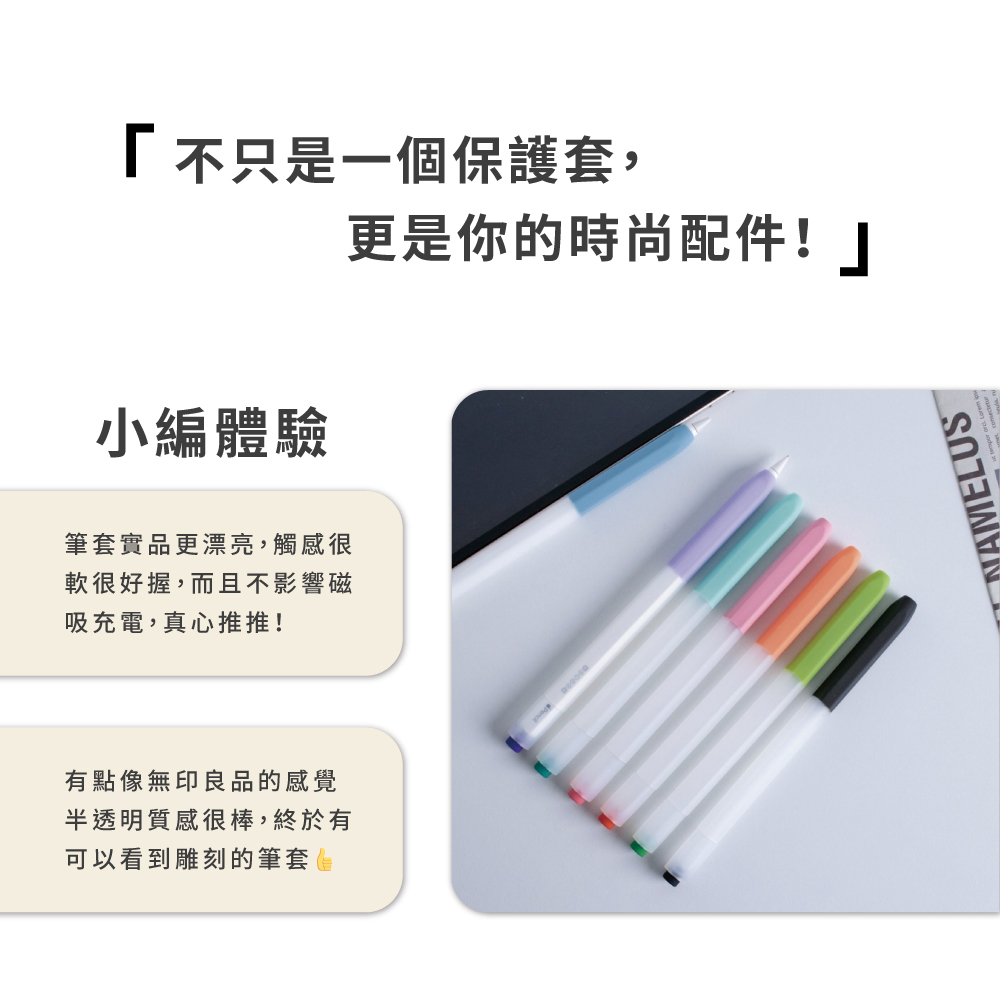 ・半透明矽膠保護套,裝上筆套也能盡顯裸筆LOGO